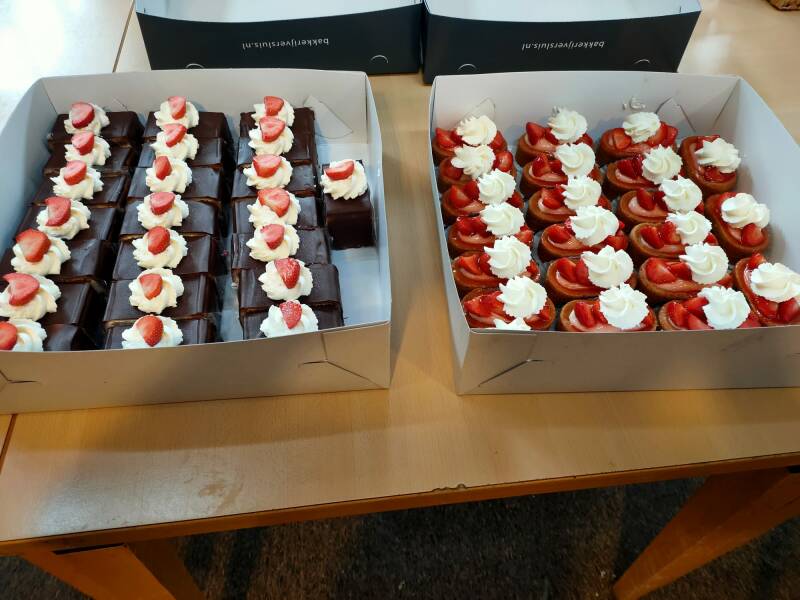 We zijn blij elkaar weer te zien en we hebben elkaar veel lief en leed te vertellen. Dit deden wij onder het genot van een “high tea and coffee” bijeenkomst met mede door de Parkinson Vereniging gesponsord gebak en advocaat met slagroom van de PLUS uit Harmelen.