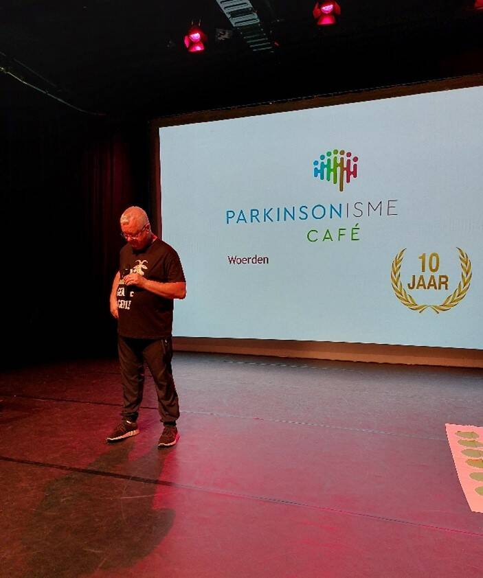 Vervolgens was de voorzitter van de Parkinson Vereniging, Jan Lantink, aan de beurt. Hij sprak Yvonne toe op haar inzet voor de Parkinson Vereniging en haar tomeloze inzet voor Parkinson Café Woerden. Hij haalde ook aan dat de degens vaak gekruist zijn tussen haar en de Parkinson Vereniging.