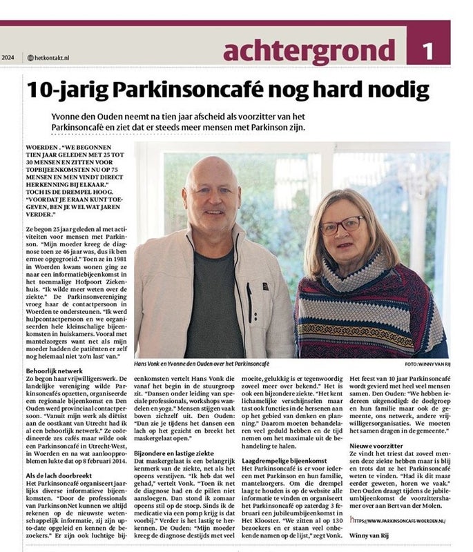 Maar ook het afscheid van Yvonne den Ouden, als voorzitter van ons Parkinson Café Woerden.